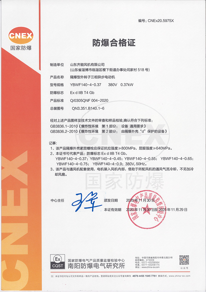 產品名稱: 防爆電機合格證-YBWF140