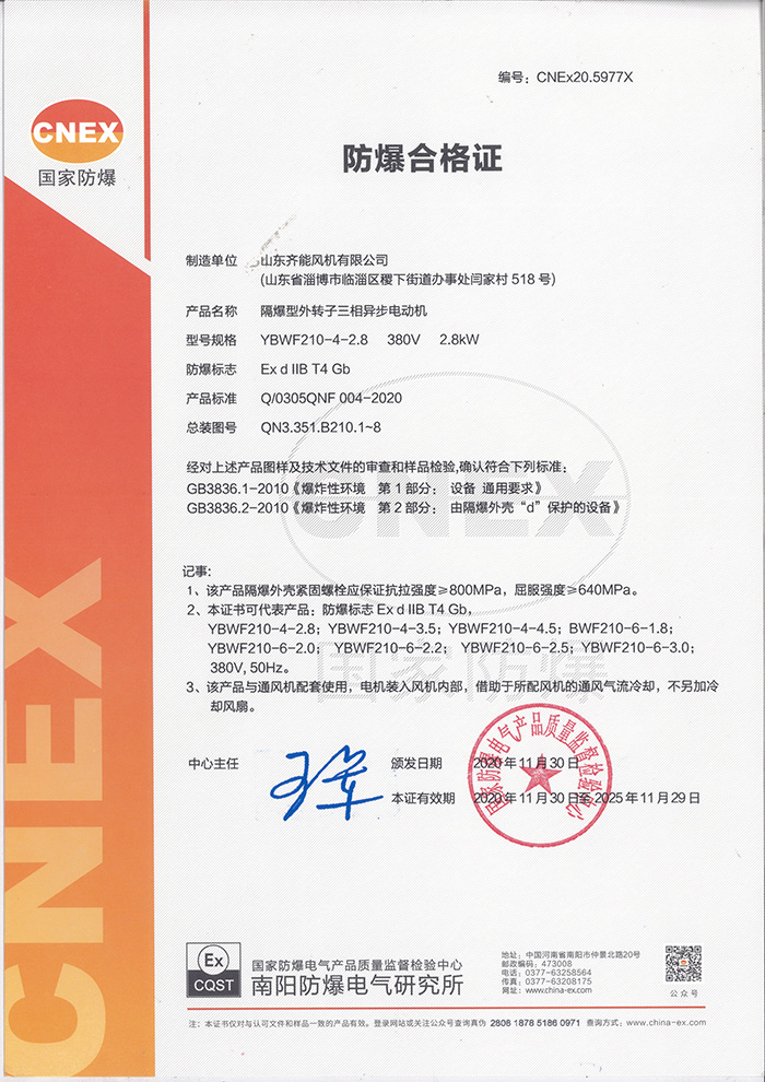產品名稱: 防爆電機合格證-YBWF210