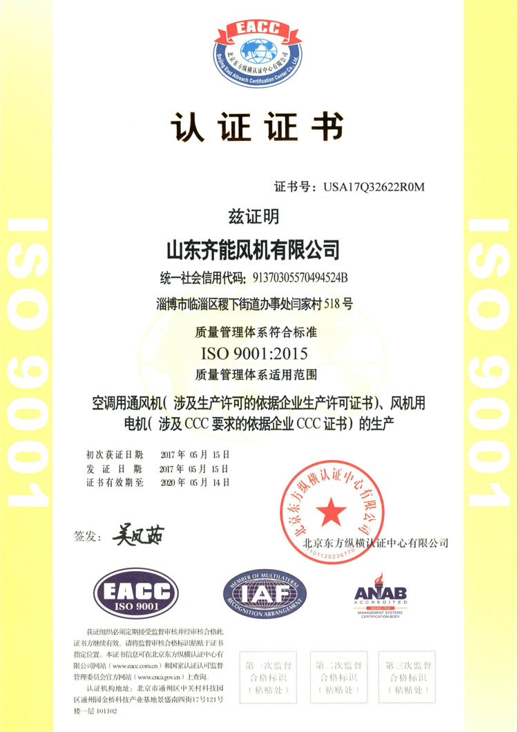 齊能空調風機的驗收合格標準
